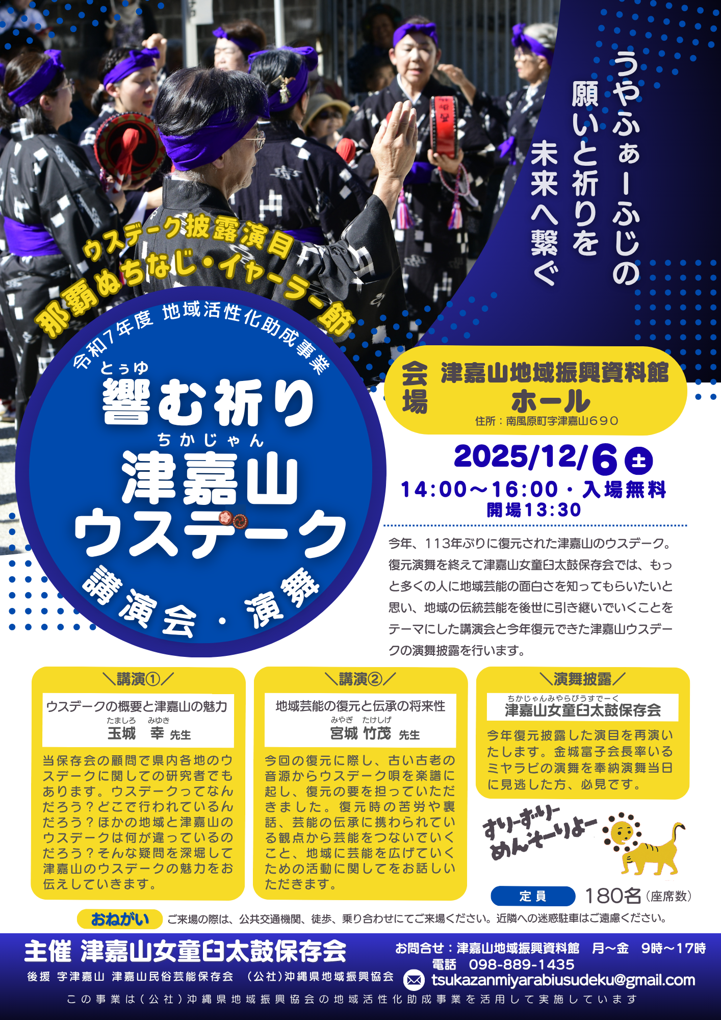 - 2025年10月28日「響む祈り津嘉山ウスデーク講演会・演舞」のご案内